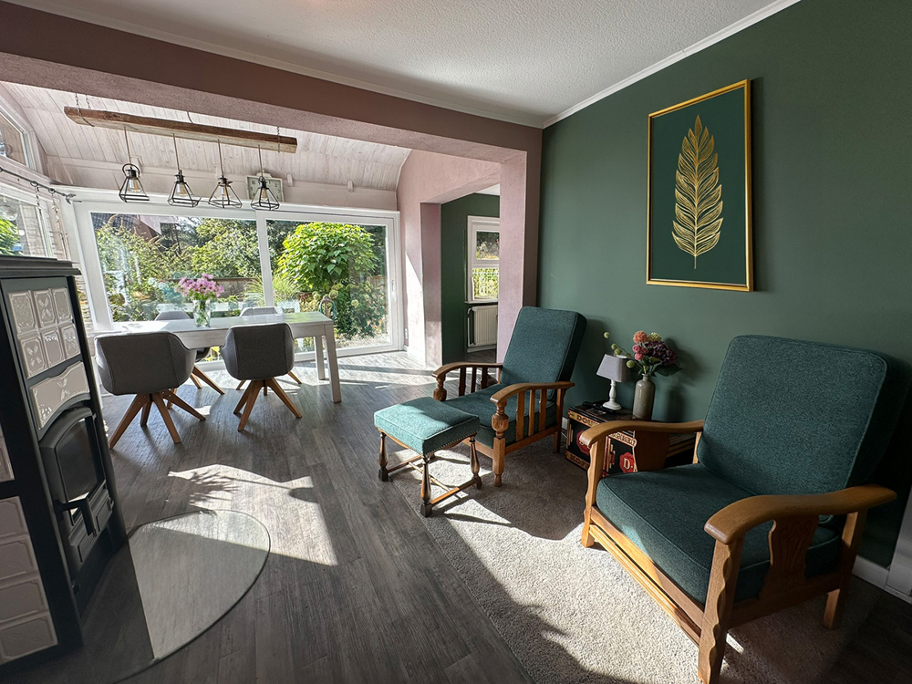 - Wasserführender Kamin (800 l, aus 2023) und moderne Gasheizung (aus 2012)