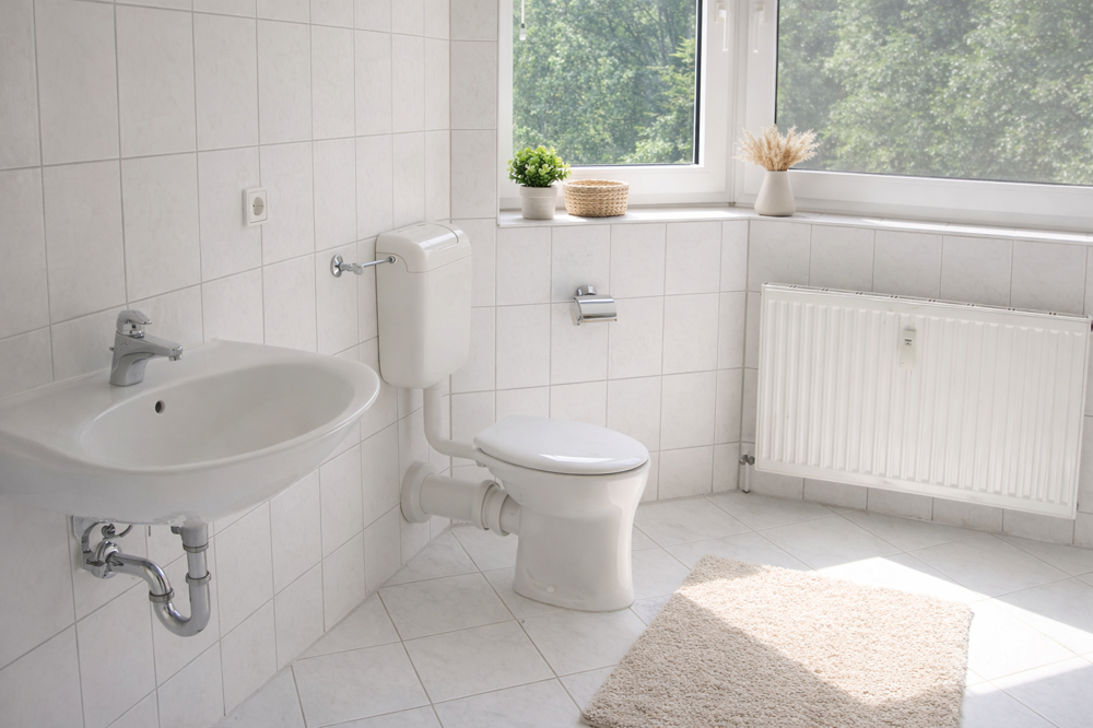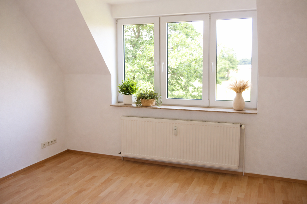 Weiße Kunststofffenster mit Wärmeschutzverglasung sorgen für eine angenehme Belichtung und tragen zu einem guten Wohnklima bei.